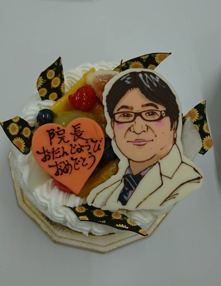 先日52歳の誕生日を迎えました。その日は開院半年後以降の役所による個別指導の準備に追われバタバタしておりましたが、後日女性スタッフの皆さんからサプライズでバースデーケーキをいただきました!似顔絵もソックリ!!